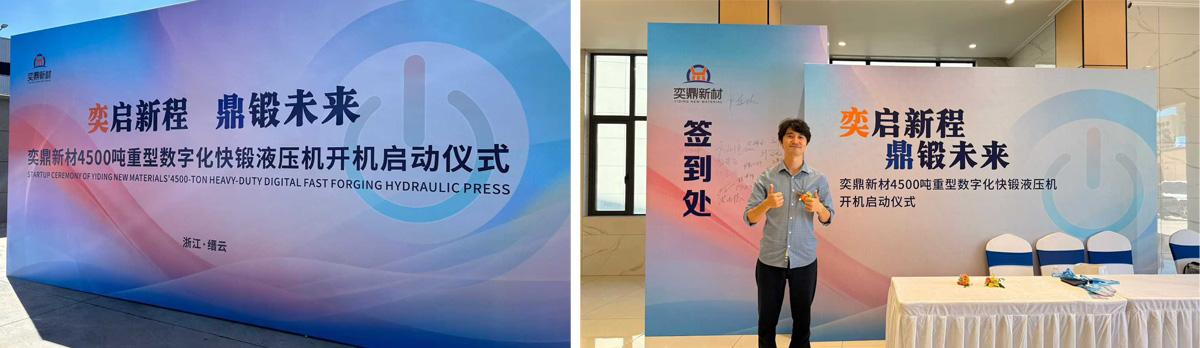 浙江奕鼎新材4500噸重型數(shù)字化快鍛液壓機(jī)開機(jī)大吉